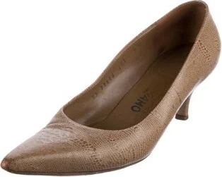 Ferragamo Leather Pumps Neutrals Animal Print Pointed-Toes Unfortunately, due to restrictions, this item may not be eligible for shipping in all areas. Read more