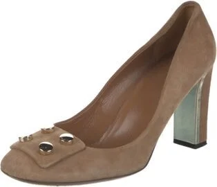 Gucci Suede Pumps Neutrals Round-Toes with Studded Accents Includes Box
