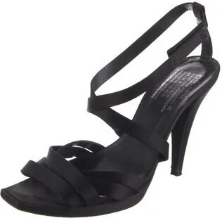 Pedro Garcia Satin Slingback Sandals Black Straps & Buckle Closure at Ankles Includes Dust Bag