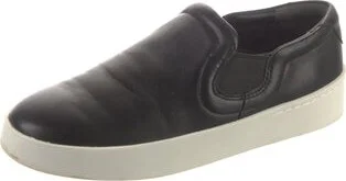 Vince Leather Slip-On Sneakers Black Round-Toes Platform Unfortunately, due to restrictions, this item may not be eligible for shipping in all areas. Read more