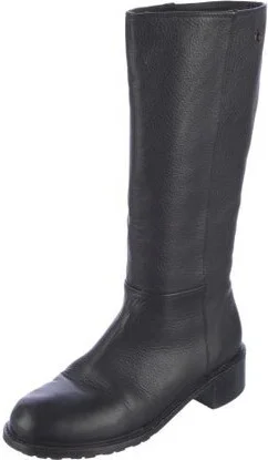 Vince Leather Knee-High Riding Boots Black Round-Toes Exposed Zip Closure at Sides Unfortunately, due to restrictions, this item may not be eligible for shipping in all areas. Read more
