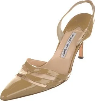 Manolo Blahnik Patent Leather Slingback Pumps Gold Pointed-Toes Fit: This style typically runs narrow and a half size small. Read more