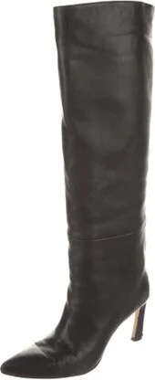 Stuart Weitzman Leather Over-The-Knee Boots Black Pointed-Toes Exposed Zip Closure at Sides Designer Fit: This designer typically runs true to size. Unfortunately, due to restrictions, this item may n Read more