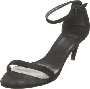 Stuart Weitzman Karung Sandals Black Leather Trim Wrap-Around Straps & Buckle Closure at Ankles Designer Fit: This designer typically runs true to size. Unfortunately, due to restrictions, this item m Read more