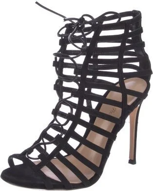 Gianvito Rossi Suede Gladiator Sandals Black Straps Includes Dust Bag