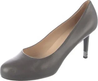 Chanel Lambskin Pumps From the 2015 Collection by Karl Lagerfeld Grey Interlocking CC Logo Semi-Pointed Toes Designer Fit: This style typically runs narrow and a half size small. Read more