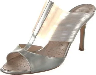 Manolo Blahnik Patent Leather Slides White Fit: This style typically runs narrow and a half size small.