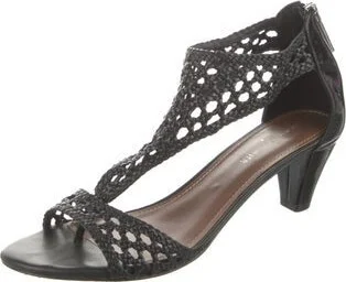 Donald Pliner Leather T-Strap Sandals Black Braided Accents Zip Closures at Shafts Includes Box Designer Fit: This designer typically runs true to size. Unfortunately, due to restrictions, this item may not be eligible for shipping in all areas.