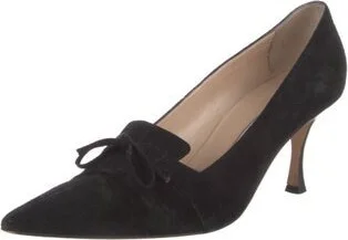 Manolo Blahnik Suede Pumps Black Semi-Pointed Toes with Bow Accents Fit: This style typically runs narrow and a half size small. Read more