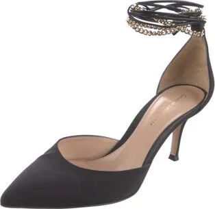 Gianvito Rossi Nylon D'Orsay Pumps Black Semi-Pointed Toes with Chain-Link Accents Wrap-Around Straps & Tie Closures Designer Fit: Pumps by Gianvito Rossi typically run a half size small. Read more