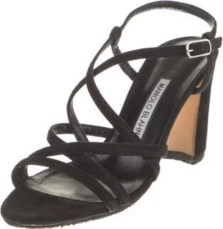 Manolo Blahnik Suede Slingback Sandals Black Multistrap & Buckle Closure at Ankles Fit: This style typically runs narrow and a half size small. Read more