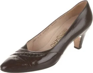 Salvatore Ferragamo Leather Pumps Brown Round-Toes Fit: This style typically runs a half size small. Unfortunately, due to restrictions, this item may not be eligible for shipping in all areas.