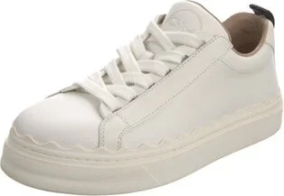 Chloé Leather Low Top Sneakers White Round-Toes with Scalloped Accent Platform Lace-Up Closure at Uppers Designer Fit: Sneakers by Chloé typically run a half size small. Unfortunately, due to restrictions, this item may not be eligible for shipping in all areas.