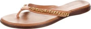 Tory Burch Leather Slides Brown Size not listed, estimated from measurements. Designer Fit: This designer typically runs true to size. Unfortunately, due to restrictions, this item may not be eligible Read more