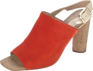 Veronica Beard Suede Slingback Sandals Orange Colorblock Pattern Leather Trim Straps Read more