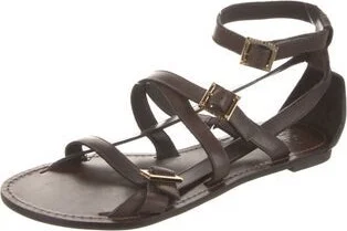 Tory Burch Leather Gladiator Sandals Brown Multistrap & Buckle Closure at Ankles Designer Fit: This designer typically runs true to size. Unfortunately, due to restrictions, this item may not be eligible for shipping in all areas.