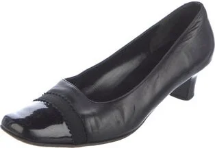 Salvatore Ferragamo Leather Pumps Black Square-Toes with Grosgrain Trim Fit: This style typically runs a half size small. Unfortunately, due to restrictions, this item may not be eligible for shipping Read more