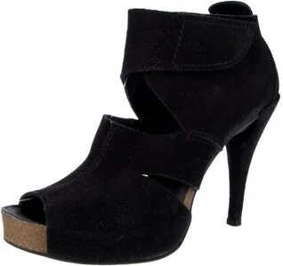 Pedro Garcia Suede Pumps Black Peep-Toes Platform Velcro Closure at Ankles Read more