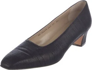 Salvatore Ferragamo Leather Pumps Blue Square-Toes Fit: This style typically runs a half size small. Unfortunately, due to restrictions, this item may not be eligible for shipping in all areas.