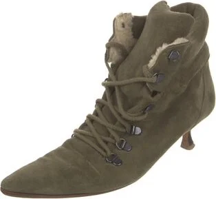 Manolo Blahnik Suede Ankle Lace-Up Boots Green Semi-Pointed Toes Lace-Up Closure at Uppers Designer Fit: This style typically runs a full size small. Read more