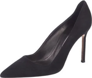Manolo Blahnik Suede Pumps Blue Semi-Pointed Toes Fit: This style typically runs narrow and a half size small. Read more