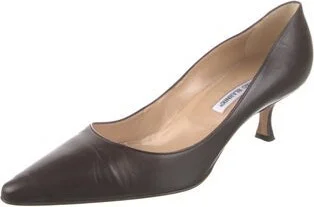 Manolo Blahnik Leather Pumps Brown Semi-Pointed Toes Fit: This style typically runs narrow and a half size small. Unfortunately, due to restrictions, this item may not be eligible for shipping in all areas.