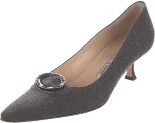 Manolo Blahnik Wool Pumps Grey Semi-Pointed Toes Fit: This style typically runs narrow and a half size small.