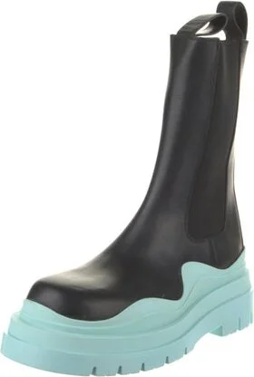 Bottega Veneta Leather Mid-Calf Chelsea Boots Black Rubber Trim Round-Toes Includes Box & Dust Bag Unfortunately, due to restrictions, this item may not be eligible for shipping in all areas. Read more