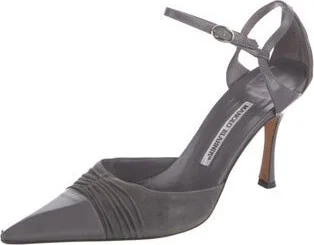 Manolo Blahnik Suede D'Orsay Pumps Grey Pointed-Toes Straps & Buckle Closure at Ankles Fit: This style typically runs narrow and a half size small. Read more