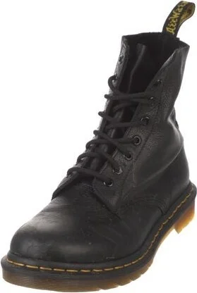 Dr. Martens Leather Mid-Calf Combat Boots Black Round-Toes Lace-Up Closure at Uppers Unfortunately, due to restrictions, this item may not be eligible for shipping in all areas. Read more