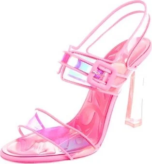 Christian Louboutin PVC Slingback Sandals Pink Leather Trim Multistrap & Buckle Closure at Ankles Designer Fit: This style typically runs a half size to a full size small. Read more
