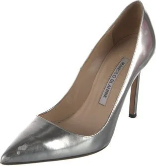 Manolo Blahnik Leather Pumps Silver Pointed-Toes Includes Box & Dust Bag Fit: This style typically runs narrow and a half size small. Unfortunately, due to restrictions, this item may not be eligible for shipping in all areas.