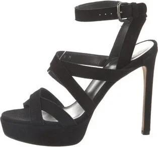 Stuart Weitzman Suede Sandals Black Platform Wrap-Around Straps & Buckle Closure at Ankles Designer Fit: This designer typically runs true to size.