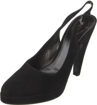 Prada Suede Slingback Pumps Black Round-Toes Platform Buckle Closure at Ankles Includes Box Designer Fit: Pumps by Prada typically run a half size small.