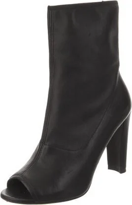 Stuart Weitzman Leather Ankle Sock Boots Black Peep-Toes Platform Includes Box Designer Fit: This designer typically runs true to size. Unfortunately, due to restrictions, this item may not be eligibl Read more