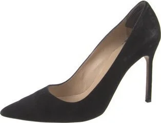 Manolo Blahnik Suede Pumps Blue Semi-Pointed Toes Fit: This style typically runs narrow and a half size small. Read more