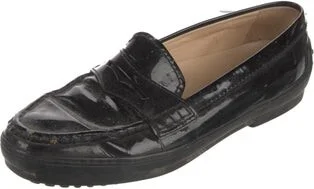 Tod's Patent Leather Loafers Black Round-Toes Read more