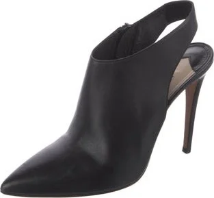 Prada Leather Slingback Pumps Black Semi-Pointed Toes Elasticized Straps & Concealed Zip Closure at Sides Designer Fit: Pumps by Prada typically run a half size small. Unfortunately, due to restrictions, this item may not be eligible for shipping in all areas.