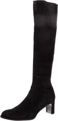 Stuart Weitzman Suede Knee-High Boots Black Square-Toes Designer Fit: This designer typically runs true to size.
