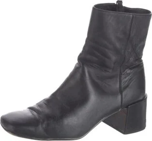 Vince Leather Ankle Boots Black Square-Toes Exposed Zip Closure at Sides Includes Dust Bag Unfortunately, due to restrictions, this item may not be eligible for shipping in all areas. Read more