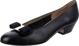 Salvatore Ferragamo Leather Flats Blue Vara Bow Accent Round-Toes with Bow Accents Includes Box Fit: This style typically runs a half size small. Unfortunately, due to restrictions, this item may not Read more