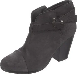 Rag & Bone Suede Ankle Boots Grey Leather Trim Round-Toes Platform Wrap-Around Straps & Peg-In-Hole Closure at Sides Designer Fit: Boots by Rag & Bone typically run a half size small.