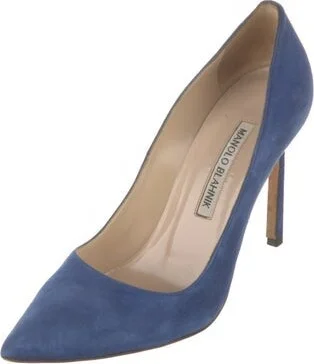 Manolo Blahnik Suede Pumps Blue Pointed-Toes Fit: This style typically runs narrow and a half size small.
