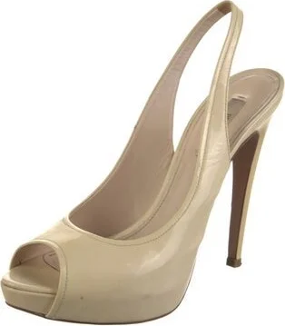 Prada Patent Leather Slingback Sandals Neutrals Platform Straps Designer Fit: Sandals by Prada typically run a half size small. Read more