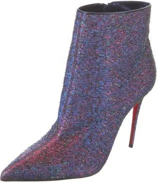 Christian Louboutin Ankle Boots Blue & Metallic Leather Trim Pointed-Toes Exposed Zip Closure at Sides Designer Fit: This style typically runs a full size small. Read more