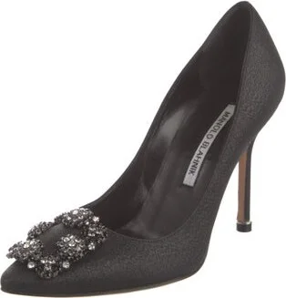 Manolo Blahnik Pumps Black Round-Toes with Crystal Embellishments Fit: This style typically runs narrow and a half size small. Read more