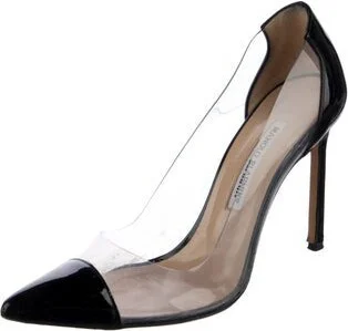 Manolo Blahnik PVC Pumps Black Pointed-Toes Fit: This style typically runs narrow and a half size small.