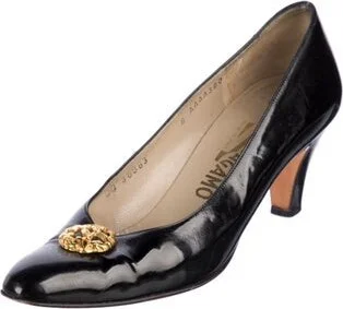 Salvatore Ferragamo Patent Leather Pumps Black Vara Bow Accent Round-Toes Fit: This style typically runs a half size small.