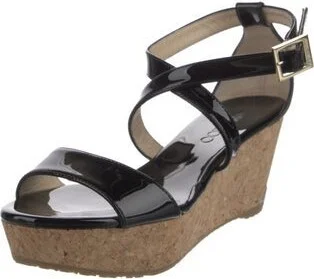 Jimmy Choo Patent Leather Sandals Black Leather & Suede Trim Platform Crossover Straps & Buckle Closure at Ankles Includes Box & Dust Bag Fit: This style typically runs a full size small. Read more