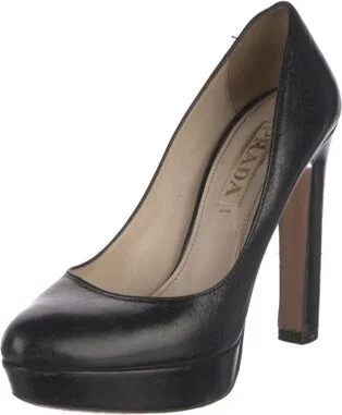 Prada Leather Pumps Black Round-Toes Platform Designer Fit: Pumps by Prada typically run a half size small. Unfortunately, due to restrictions, this item may not be eligible for shipping in all areas. Read more